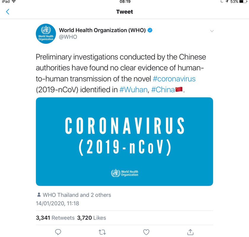 Richard claims the message by the end of January from China was absolutely clear – why then, in late January, did he Tweet: