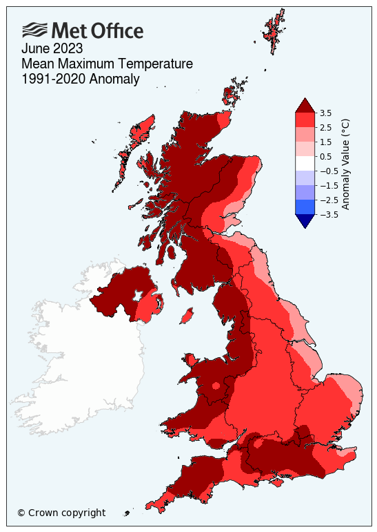 As well as the overall UK June record, England, Scotland, Wales and Northern Ireland each recorded their warmest June since the Met Office started collecting the data in 1884.