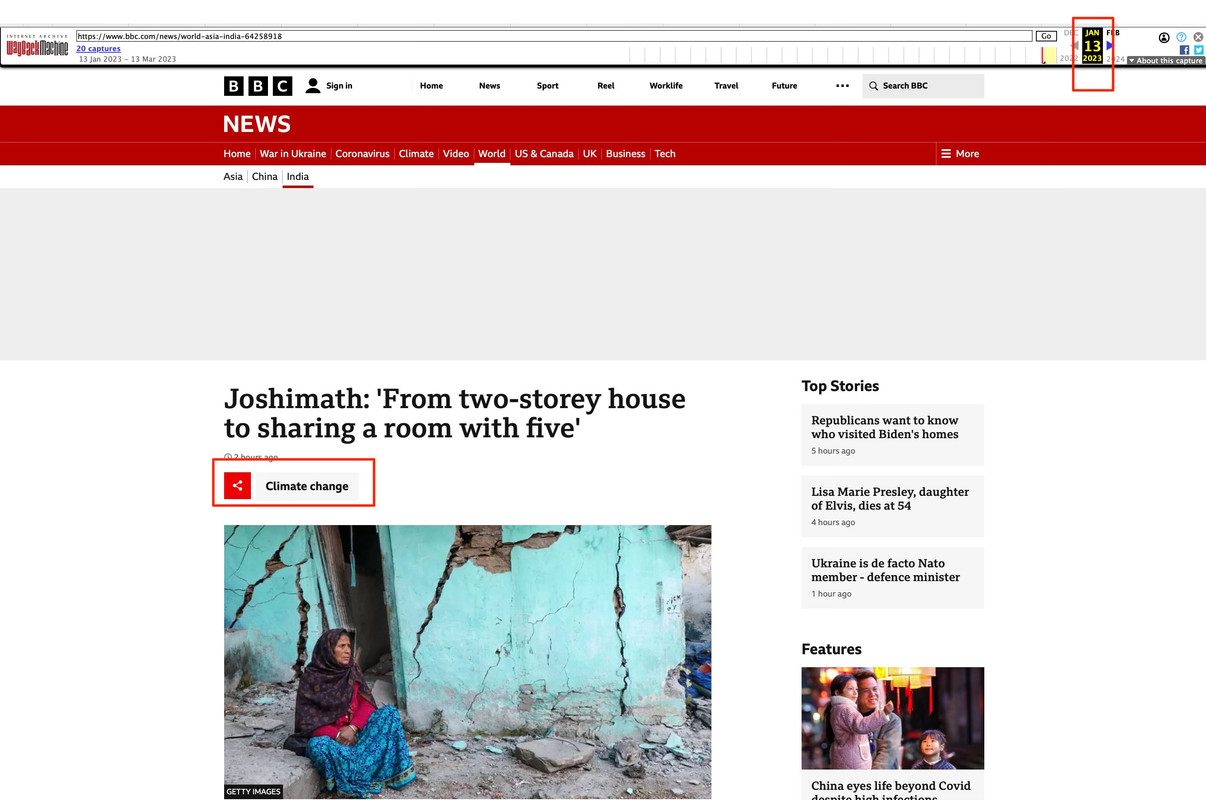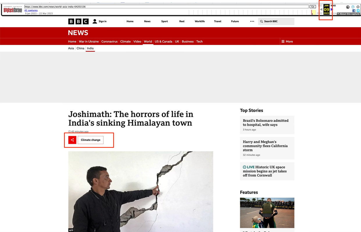 2. “Joshimath: The trauma of living in India’s sinking Himalayan town.” and “Joshimath: Cramped shelters fill up fast as India’s Himalayan town sinks.”