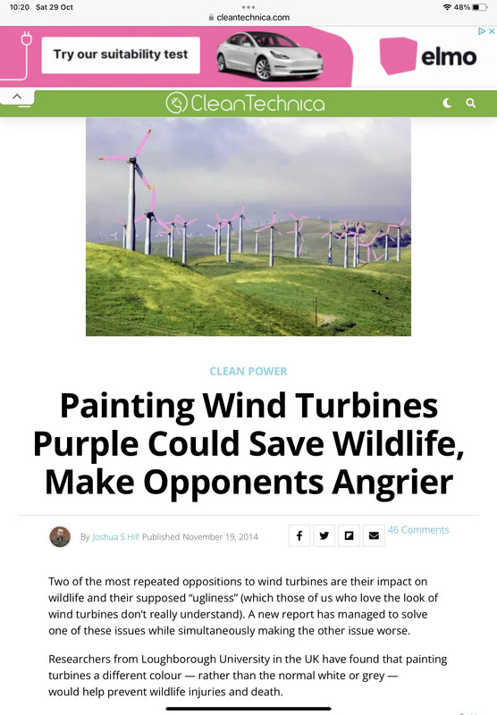 Obviously being painted a bright colour will suddenly enable bats to detect them with sonar. Morons isn’t a strong enough word to describe these ‘researchers’.
