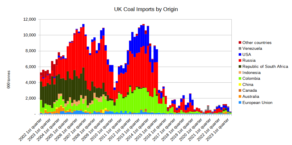 UK coal import history: is it really a potential alternative with secure, diverse supply? Asian markets have taken away several sources, Russia is off limits, and the USA is not a long term reliable source because of varying export economics and regulatory impediments.